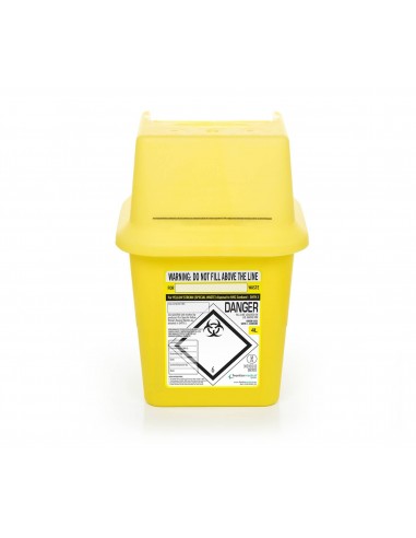 Contenedor de 4L para facilitar la eliminación de forma segura de materialpunzante, evitando pinchazos y posibles infecciones. Con sistema de cerrado permanente.