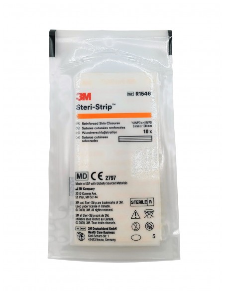 Las suturas cutáneas adhesivas reforzadas 3M™ Steri-Strip™ son los cierres originales para heridas con material microporoso no tejido diseñado para dejar que la piel 'respire' y filamentos reforzados para una mayor resistencia. Adhesivo hipoalergénico sensible a la presión.