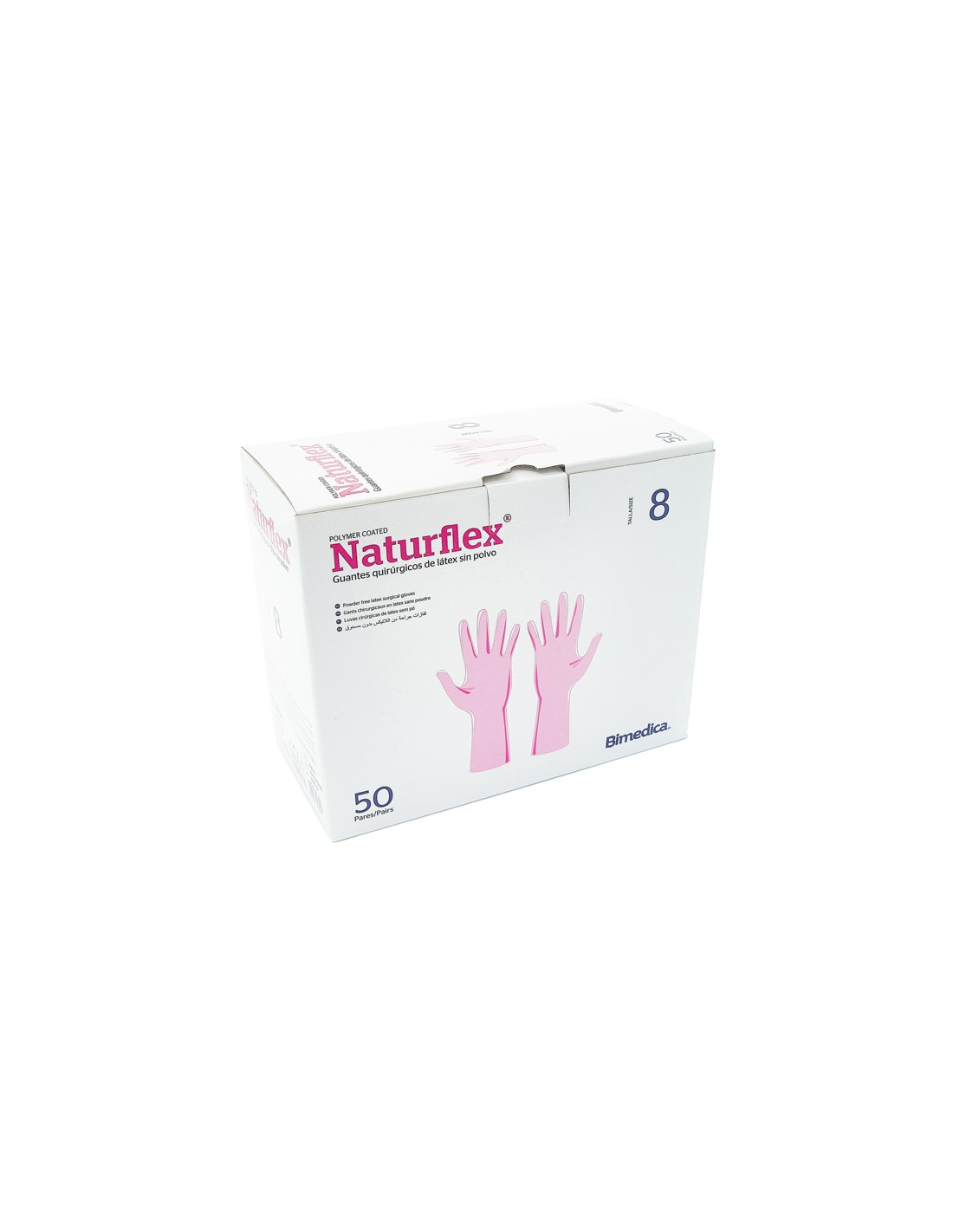 Latex surgical gloves, single use. Sterile and powder free. Microtexture surface. Anatomical shape and high touch sensitivity. Available in several sizes. Size 8. Box with 50 pairs.