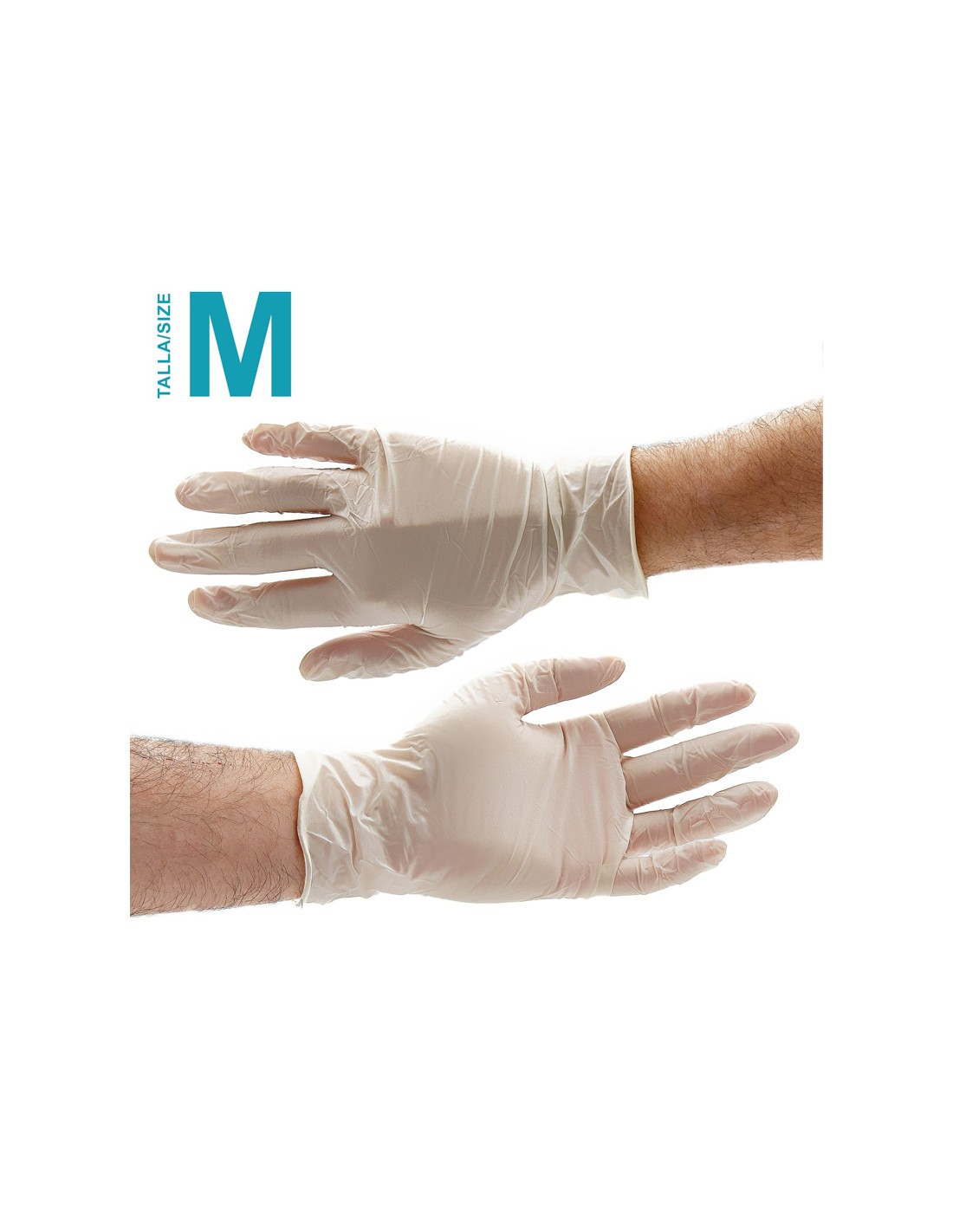 Guantes de látex con polvo y uso médico, para la prevención de la infección cruzada en aquellas prácticas sanitarias que comportan un contacto usuario-paciente. Especialmente indicados para aquellas tareas que requieren protección frente a microorganismos y agentes químicos. Clasificado como producto sanitario de Clase I. Estos guantes ofrecen equilibrio entre sensibilidad táctil y resistencia ayudando a realizar las tareas con mayor precisión. Disponibles en varias tallas. Talla M. Caja de 100 unidades.